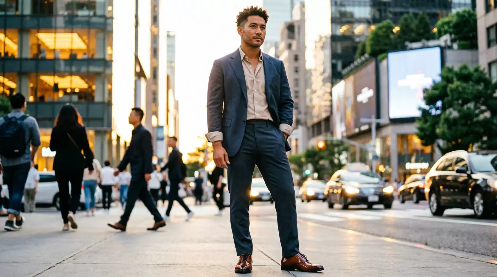 - Phong cách smart-casual: Blazer + Derby